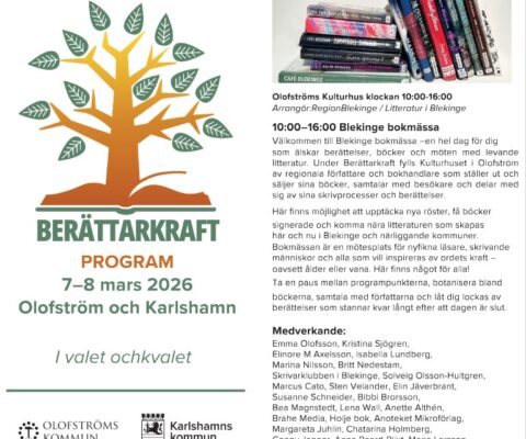 Det var en fantastisk och i högsta grad inspirerande dag på Blekinge bokmässa i samband med Berättarkraft på lördag 7 mars kl 10-16 i Kulturhuset...