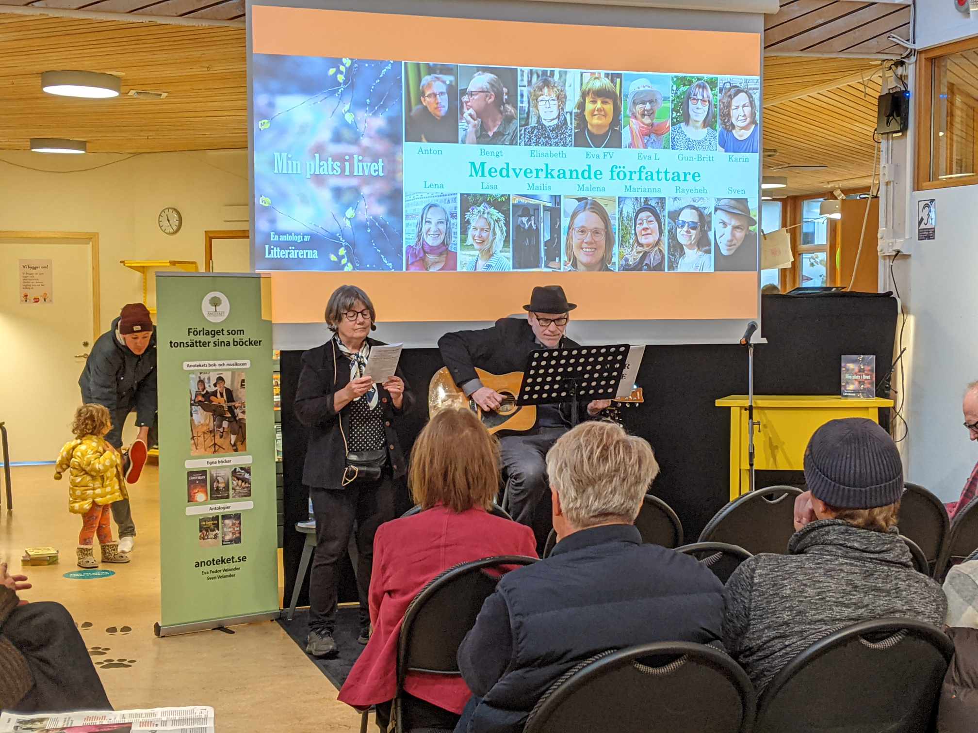 Om oss: Eva och Sven Velander – Vi är förlaget som tonsätter sina böcker och presenterar dem i ord och ton på Anotekets Bok- och musikscen.