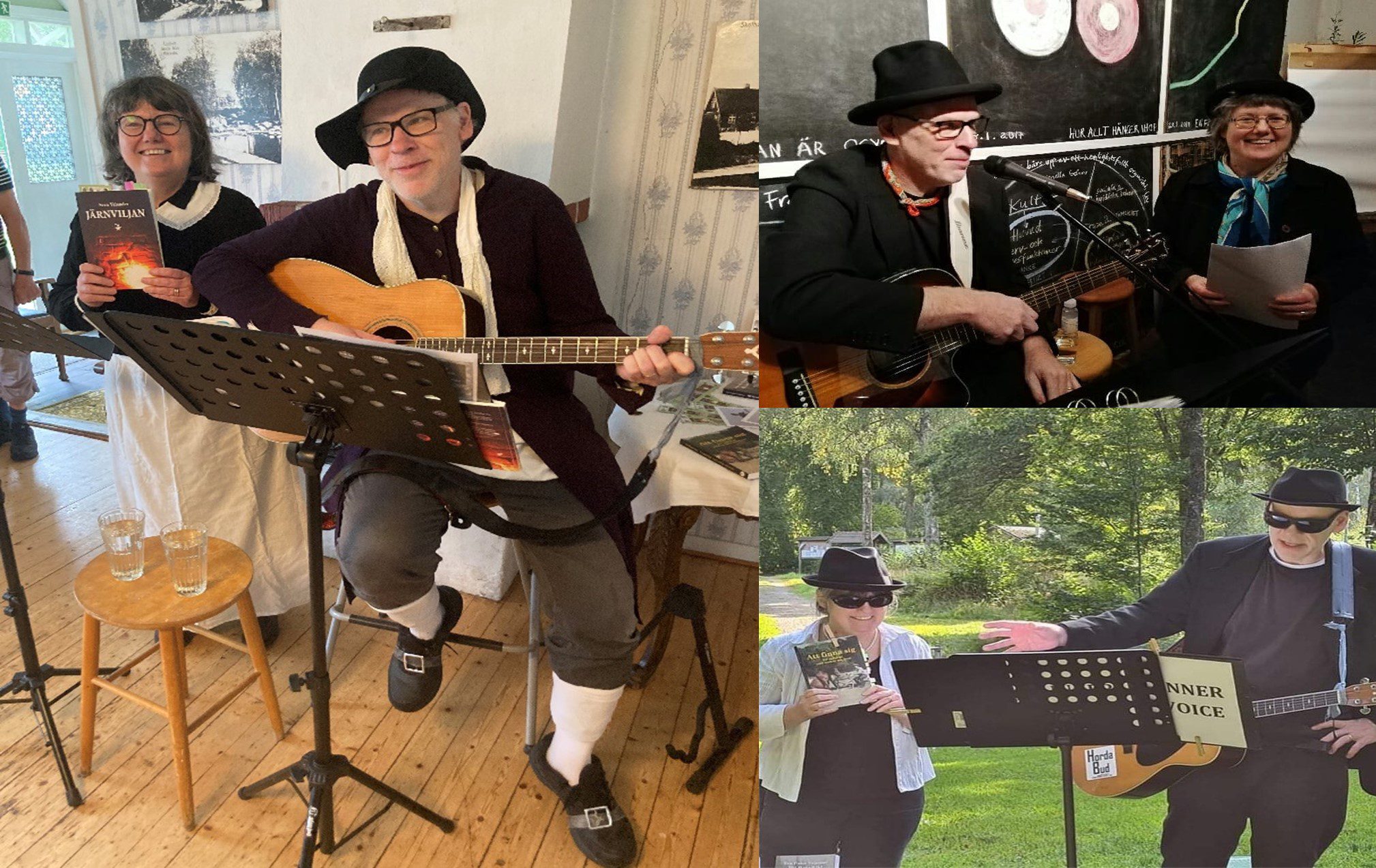 Texterna i den litterära delen är hämtade från våra böcker. Vi använder egenkomponerad musik och sång som verktyg.